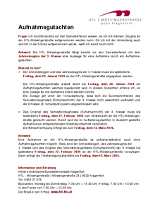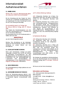 (Die Aufnahmeprüfungen finden in der letzten Schulwoche bei uns an der HTL Mössingerstraße statt. Du musst Dich vorher anmelden!)