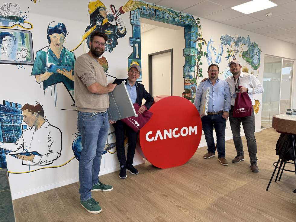 Dipl.-Ing. Benjamin Makula (HTL Mössingerstraße), Ing. Gerhard Hütter, CMC (Key Account Manager, CANCOM), Helmar Glinitzer (Release Engineer, CANCOM) und Dipl.-Ing. Thomas Korak (HTL Mössingerstraße)