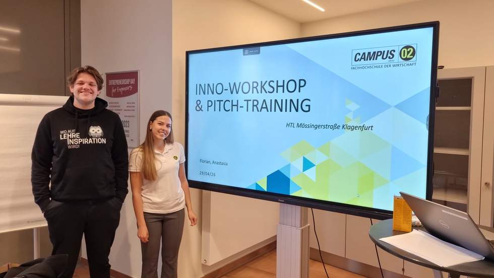 Zwei Studierende der FH CAMPUS 02 aus dem Studiengang Innovationsmanagement – Anastasia und Florian – fungierten dabei als kompetente Trainerin und Trainer.