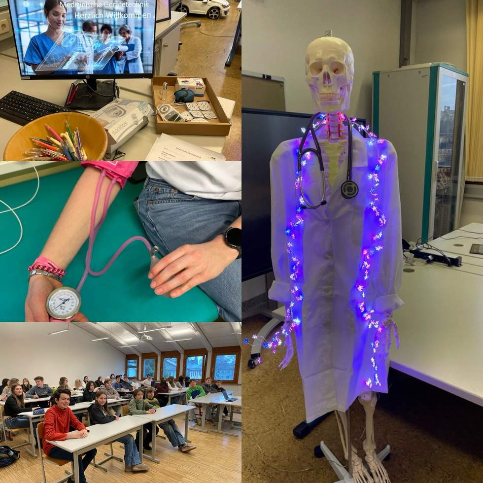 Im Unterrichtsfach Medizinische Gerätetechnik erhielten die Gäste einen Einblick in den Umgang mit verschiedenen medizinischen Geräten. Gemeinsam mit den Buddies lernten sie, wie man wichtige Vitalparameter wie Blutdruck, Puls und Sauerstoffsättigung misst.