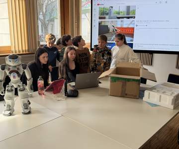 Schülerinnen und Schüler beschäftigten sich im Rahmen eines dreistündigen Online-Workshops mit ethischen Fragestellungen im Zusammenhang mit…
